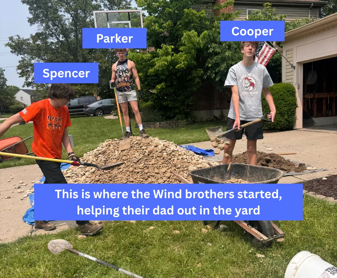 Windworks was started by Cooper, a hardworking young man from Kings Mills who grew up helping neighbors with their yards. As the business grew, he brought his brothers along — and now the three of them work together as a family-run team.